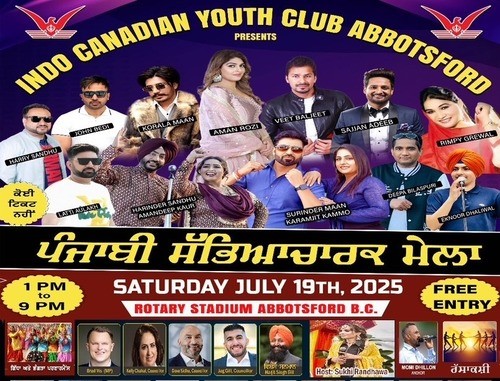 ਐਬਸਫੋਰਡ ( ਦੇ ਪ੍ਰ ਬਿ)- -ਇੰਡੋ ਕੈਨੇਡੀਅਨ ਯੂਥ ਕਲੱਬ ਐਬਸਫੋਰਡ ਵਲੋਂ ਇਸ ਵਾਰ ਸਲਾਨਾ ਪੰਜਾਬੀ ਸਭਿਆਚਾਰਕ ਮੇਲਾ ਰੋਟਰੀ ਸਟੇਡੀਅਮ ਐਬਸਫੋਰਡ ਵਿਖੇ 19 ਜੁਲਾਈ ਦਿਨ ਸ਼ਨੀਵਾਰ ਨੂੰ ਕਰਵਾਇਆ ਜਾ ਰਿਹਾ ਹੈ। ਕਲੱਬ ਦੇ ਪ੍ਰਧਾਨ ਰਣਜੋਧ ਸਿੰਘ ਸਿੱਧੂ ਜੋਧਾ ਚੱਕਰ ਵਲੋਂ ਦਿੱਤੀ ਗਈ ਜਾਣਕਾਰੀ ਮੁਤਾਬਿਕ ਇਸ ਮੇਲੇ ਵਿਚ ਉਘੇ ਗਾਇਕ ਸੱਜਣ ਅਦੀਬ, ਹਰਿੰਦਰ ਸੰਧੂ, ਅਮਨਦੀਪ ਕੌਰ, ਸੁਰਿੰਦਰ ਮਾਨ, ਕਰਮਜੀਤ ਕੰਮੋ, ਅਮਨ ਰੋਜ਼ੀ, ਵੀਤ ਬਲਜੀਤ, ਰਿੰਪੀ ਗਰੇਵਾਲ, ਕੋਰੇਆਲਾ ਮਾਨ, ਹੈਰੀ ਸੰਧੂ, ਜੋਹਨ ਬੇਦੀ, ਲਾਟੀ ਔਲਖ, ਦੀਪਾ ਬਿਲਾਸਪੁਰ ਤੇ ਏਕਨੂਰ ਧਾਲੀਵਾਲ ਆਪਣੇ ਆਪਣੇ ਫਨ ਦਾ ਮਜ਼ਾਹਰਾ ਕਰਦਿਆਂ ਦਰਸ਼ਕਾਂ ਸਰੋਤਿਆਂ ਦਾ ਮਨੋਰੰਜਨ ਕਰਨਗੇ। ਦੁਪਹਿਰ 1 ਵਜੇ ਤੋਂ ਰਾਤ ਸ਼ਾਮ 9 ਵਜੇ ਤੱਕ ਹੋਣ ਵਾਲੇ ਇਸ ਮੇਲੇ ਲਈ ਕੋਈ ਟਿਕਟ ਨਹੀ ਹੈ। ਮੇਲੇ ਦੌਰਾਨ ਗਿੱਧੇ ਤੇ ਭੰਗੜੇ ਦੀ ਪੇਸ਼ਕਾਰੀ ਤੋਂ ਇਲਾਵਾ ਰੱਸਾਕਸ਼ੀ ਦੇ ਮੁਕਾਬਲੇ ਵੀ ਕਰਵਾਏ ਜਾਣਗੇ। ਮੇਲੇ ਵਿਚ ਮੁੱਖ ਮਹਿਮਾਨ ਵਜੋਂ ਐਮ ਪੀ ਬਰੈਡ ਵਿਸ, ਕੌਸਲਰ ਕੈਲੀ ਚਾਹਲ, ਕੌਸਲਰ ਦੇਵ ਸਿੱਧੂ, ਕੌਸਲਰ ਜੈਗ ਸਿੱਧੂ ਤੇ ਹੋਰ ਕਈ ਸ਼ਖਸੀਅਤਾਂ ਹਾਜ਼ਰੀ ਭਰਨਗੀਆਂ। ਉਘੇ ਰੇਡੀਓ ਹੋਸਟ ਹਰਜੀਤ ਸਿੰਘ ਗਿੱਲ ਦਾ ਵਿਸ਼ੇਸ਼ ਸਨਮਾਨ ਕੀਤਾ ਜਾਵੇਗਾ। ਮੰਚ ਸੰਚਾਲਨ ਉਘੀ ਰੇਡੀਓ ਟੀਵੀ ਹੋਸਟ ਸੁੱਖੀ ਰੰਧਾਵਾ ਤੇ ਮੋਮੀ ਢਿੱਲੋਂ ਹੋਣਗੇ। ਵਧੇਰੇ ਜਾਣਕਾਰੀ ਲਈ ਜੋਧਾ ਚੱਕਰ ਨਾਲ ਫੋਨ ਨੰਬਰ 604-825-8315, ਹਰਵਿੰਦਰ ਤੂਰ 604-825-3839, ਨਿਰਵੈਰ ਪੱਡਾ 604-807-8399, ਬਲਜਿੰਦਰ ਬਰਾੜ 604-825-0034, ਜਸਕਰਨ ਧਾਲੀਵਾਲ 604-825-3687 ਤੇ ਸੰਪਰਕ ਕੀਤਾ ਜਾ ਸਕਦਾ ਹੈ।