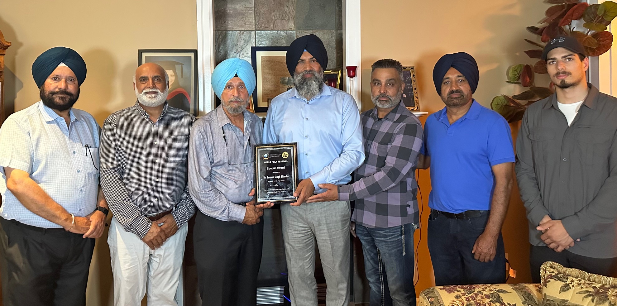 ਸਰੀ ( ਦੇ ਪ੍ਰ ਬਿ)- ਸਿੱਖ ਨੈਸ਼ਨਲ ਕਾਲਜ ਬੰਗਾ ਦੇ ਪ੍ਰਿੰਸੀਪਲ ਡਾ ਤਰਸੇਮ ਸਿੰਘ ਭਿੰਡਰ ਆਪਣੇ ਕੈਨੇਡਾ ਦੌਰੇ ਦੌਰਾਨ ਬੀਤੇ ਦਿਨ ਸਰੀ ਅਤੇ ਲੈਂਗਲੀ ਵਿਖੇ ਪੁੱਜੇ। ਇਸ ਦੌਰਾਨ ਇੰਟਰਨੈਸ਼ਨਲ ਪੰਜਾਬੀ ਫੋਕ ਆਰਟਸ ਸੁਸਾਇਟੀ ਜੋ ਕਿ ਹਰ ਸਾਲ ਵਰਲਡ ਫੋਕ ਫੈਸਟੀਵਲ ਕਰਵਾਉਂਦੀ ਹੈ, ਵਲੋਂ ਉਹਨਾਂ ਨਾਲ ਇਕ ਵਿਸ਼ੇਸ਼ ਮਿਲਣੀ ਰੱਖੀ ਗਈ। ਇਸ ਮੌਕੇ ਉਹਨਾਂ ਨੇ ਸੁਸਾਇਟੀ ਵਲੋਂ ਪੰਜਾਬੀ ਸਭਿਆਚਾਰ ਤੇ ਲੋਕ ਕਲਾਵਾਂ ਨੂੰ ਕੌਮਾਂਤਰੀ ਪੱਧਰ ਤੇ ਪਹੁੰਚਾਉਣ ਅਤੇ ਪ੍ਰਸਾਰਨ ਲਈ ਕੀਤੇ ਜਾ ਰਹੇ ਉਦਮ ਦੀ ਸ਼ਲਾਘਾ ਕੀਤੀ ਤੇ ਇਸਨੂੰ ਸੁਸਾਇਟੀ ਦੀਆਂ ਮਾਣਮੱਤੀਆਂ ਪ੍ਰਾਪਤੀਆਂ ਦੱਸਿਆ। ਇਸ ਮੌਕੇ ਸੁਸਾਇਟੀ ਵਲੋਂ ਚਰਨਜੀਤ ਸਿੰਘ ਸੈਣੀ, ਕੁਲਵਿੰਦਰ ਸਿੰਘ ਹੇਅਰ, ਪਰਮਜੀਤ ਸਿੰਘ ਜਵੰਦਾ ਵਲੋਂ ਡਾ ਭਿੰਡਰ ਦਾ ਵਿਸ਼ੇਸ਼ ਸਵਾਗਤ ਕਰਦਿਆਂ ਉਹਨਾਂ ਦਾ ਯਾਦਗਾਰੀ ਚਿੰਨ ਨਾਲ ਸਨਮਾਨ ਕੀਤਾ ਗਿਆ। ਇਸ ਮੌਕੇ ਵਿਸ਼ੇਸ਼ ਤੌਰ ਤੇ ਪੁੱਜੇ ਲਾਇਲਪੁਰ ਖਾਲਸਾ ਕਾਲਜ ਜਲੰਧਰ ਦੇ ਪੰਜਾਬੀ ਵਿਭਾਗ ਦੇ ਸਾਬਕਾ ਮੁਖੀ ਪ੍ਰੋ ਗੋਪਾਲ ਸਿੰਘ ਬੁੱਟਰ ਤੇ ਦੇਸ ਪ੍ਰਦੇਸ ਟਾਈਮਜ਼ ਦੇ ਸੰਪਾਦਕ ਸ ਸੁਖਵਿੰਦਰ ਸਿੰਘ ਚੋਹਲਾ ਦਾ ਵੀ ਸਨਮਾਨ ਕੀਤਾ ਗਿਆ।ਇਸ ਮੌਕੇ ਸ ਚਰਨਜੀਤ ਸਿੰਘ ਸੈਣੀ ਨੇ ਸੁਸਾਇਟੀ ਵਲੋਂ ਵਰਲਡ ਫੋਕ ਫੈਸਟੀਵਲ ਵਿਚ ਡਾ ਭਿੰਡਰ ਦੇ ਸਹਿਯੋਗ ਅਤੇ ਉਹਨਾਂ ਵਲੋਂ ਸਭਿਆਚਾਰਕ ਕਲਾਵਾਂ ਨੂੰ ਪ੍ਰਫੁੱਲਤ ਕਰਨ ਲਈ ਪਾਏ ਜਾ ਰਹੇ ਯੋਗਦਾਨ ਅਤੇ ਉਹਨਾਂ ਦੇ ਗ੍ਰਹਿ ਵਿਖੇ ਪੁੱਜਣ ਤੇ ਵਿਸ਼ੇਸ਼ ਧੰਨਵਾਦ ਕੀਤਾ।