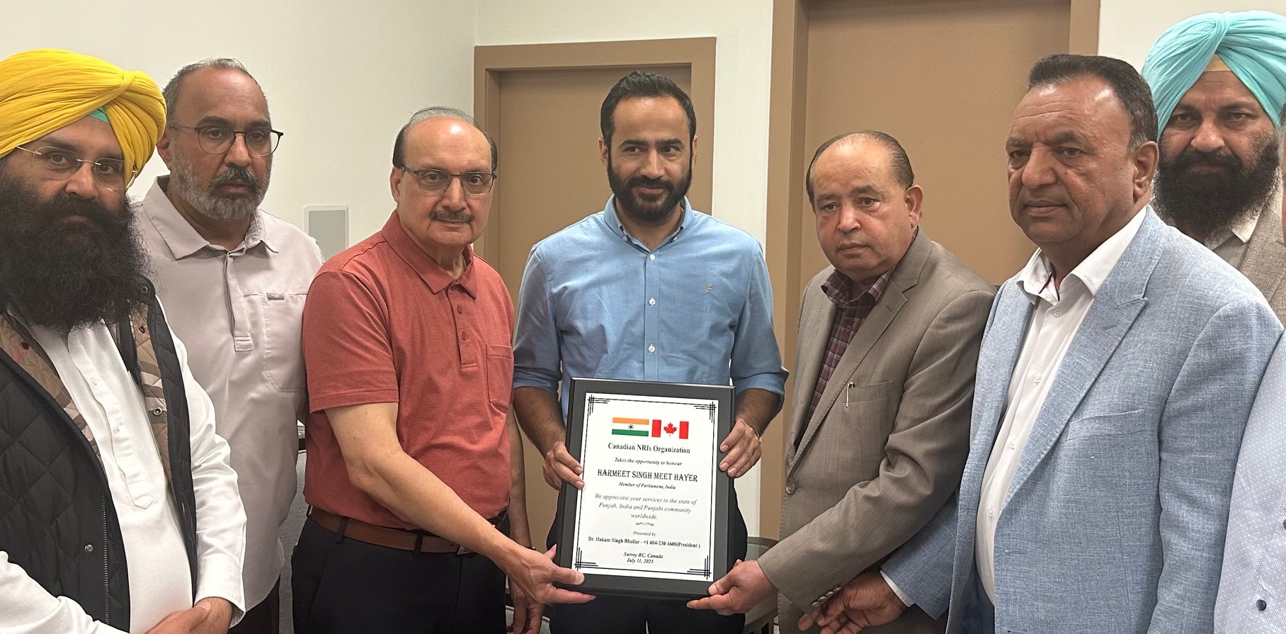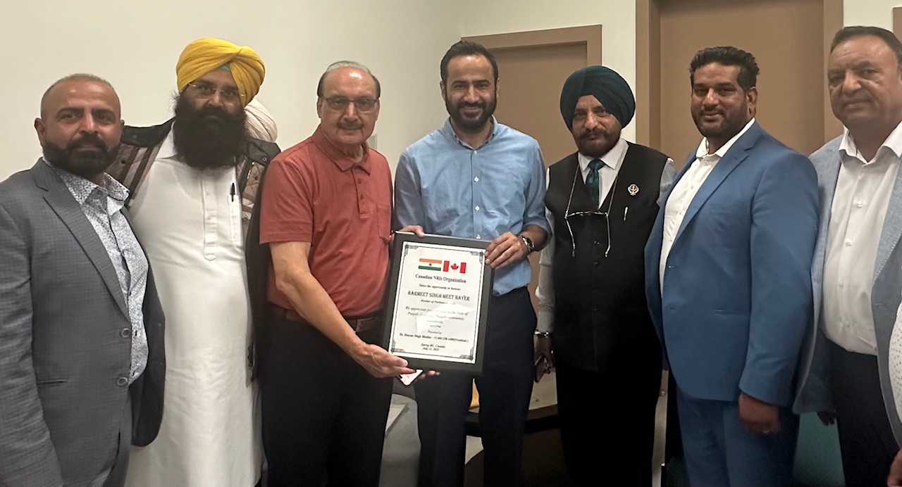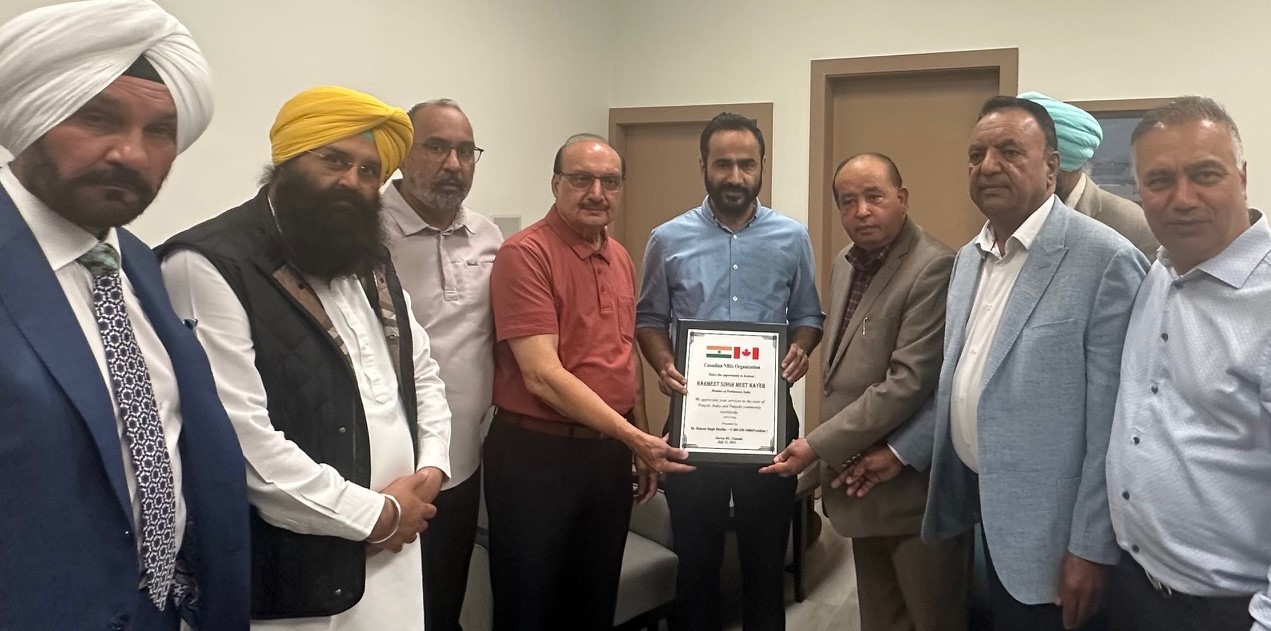 ਸਰੀ ਵਿਚ ਇਕ ਸਮਾਗਮ ਦੌਰਾਨ ਕੈਨੇਡੀਅਨ ਐਨ ਆਰ ਆਈ ਆਰਗੇਨਾਈਜੇਸ਼ਨ ਵਲੋਂ ਪੰਜਾਬ ਤੋਂ ਆਏ ਐਮ ਪੀ ਹੇਅਰ ਦਾ ਸਨਮਾਨ-