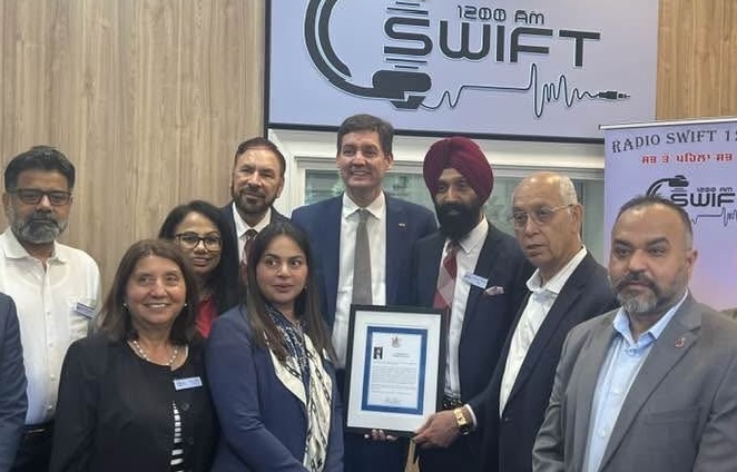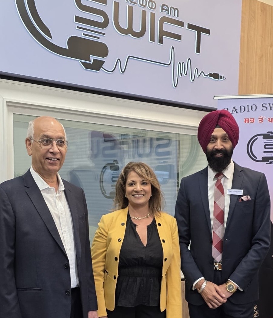 ਸਰੀ ( ਦੇ ਪ੍ਰ ਬਿ)- ਬੀਤੇ ਦਿਨ ਸਰੀ ਦੇ ਉਘੇ ਬਿਜਨਸਮੈਨ ਸ ਕੁਲਵੰਤ ਸਿੰਘ ਢੇਸੀ ਤੇ ਉਘੇ ਰੇਡੀਓ, ਟੀਵੀ ਹੋਸਟ ਤੇ ਗੀਤਕਾਰ ਦਵਿੰਦਰ ਬੈਨੀਪਾਲ ਵਲੋਂ ਬ੍ਰਿਟਿਸ਼ ਕੋਲੰਬੀਆ ਦੇ ਪੰਜਾਬੀ ਭਾਈਚਾਰੇ ਲਈ ਨਵੇਂ ਸਵਿਫਟ ਰੇਡੀਓ (1200 ਏ ਐਮ) ਦੀ ਸ਼ਾਨਦਾਰ ਸ਼ੁਰੂਆਤ ਕੀਤੀ ਗਈ। ਜ਼ਿਕਰਯੋਗ ਹੈ ਕਿ ਇਸਤੋਂ ਪਹਿਲਾਂ ਪਿਛਲੇ ਲੰਬੇ ਸਮੇਂ ਤੋਂ ਇਸ ਫਰੀਕਐਂਸੀ ਉਪਰ ਸਪਾਈਸ ਰੇਡੀਓ ਉਘੀ ਰੇਡੀਓ ਹੋਸਟ ਸੁਸ਼ਮਾ ਦੱਤ ਵਲੋਂ ਚਲਾਇਆ ਜਾ ਰਿਹਾ ਸੀ। ਸਵਿਫਟ ਰੇਡੀਓ ਸਟੇਸ਼ਨ ਦਾ ਆਫਿਸ 13049-76 ਐਵਨਿਊ ਉਪਰ ਸਥਾਪਿਤ ਕੀਤਾ ਗਿਆ ਹੈ ਤੇ ਇਸ ਨਵੇਂ ਰੇਡੀਓ ਨਾਲ ਲੰਬਾ ਤਜੁਰਬਾ ਰੱਖਣ ਵਾਲੇ ਰੇਡੀਓ ਹੋਸਟਾਂ ਦੀ ਟੀਮ ਸ਼ਾਮਿਲ ਹੋਈ ਹੈ ਜਿਹਨਾਂ ਵਿਚ ਡਾ ਜਸਵੀਰ ਸਿੰਘ ਰੋਮਾਣਾ, ਡਾ ਰਮਿੰਦਰ ਸਿੰਘ ਕੰਗ, ਸਮੀਰ ਕੌਸ਼ਲ, ਲਵੀ ਪੰਨੂੰ, ਮਿੰਨੀ ਡੌਲਾ, ਡਾ ਜਸਵਿੰਦਰ ਦਿਲਾਵਰੀ ਤੇ ਸਾਬਕਾ ਮੰਤਰੀ ਜਿੰਨੀ ਸਿਮਸ ਦੇ ਨਾਮ ਜ਼ਿਕਰਯੋਗ ਹਨ।