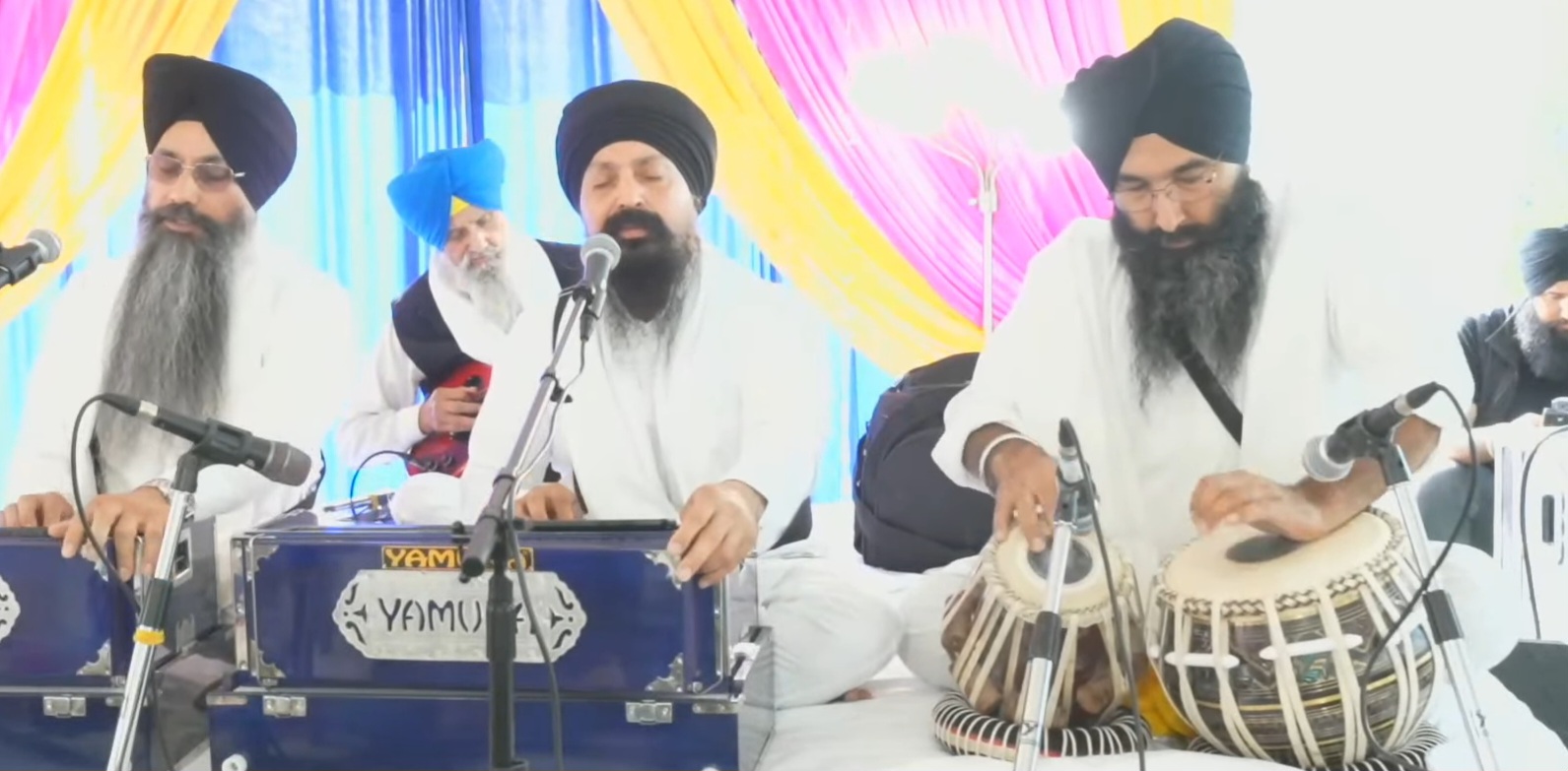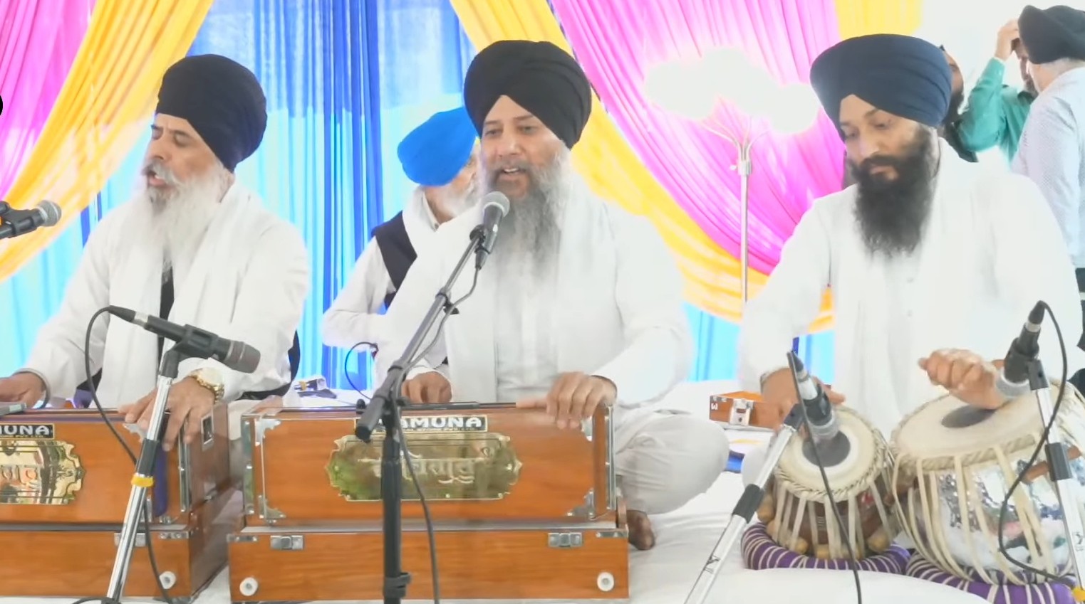 ਐਡਮਿੰਟਨ (ਗੁਰਪ੍ਰੀਤ ਸਿੰਘ)-ਐਡਮਿੰਟਨ ਦੀ 66 ਸਟਰੀਟ ਸਥਿਤ ਗੁਰਦੁਆਰਾ ਦੂਖ ਨਿਵਾਰਨ ਸਾਹਿਬ ਵਿਖੇ ਪ੍ਰਬੰਧਕ ਕਮੇਟੀ ਤੇ ਸਮੂਹ ਸੰਗਤ ਦੇ ਸਹਿਯੋਗ ਨਾਲ ਪਹਿਲੀ ਵਾਰ ਖੁਲੇ ਪੰਡਾਲ ਵਿਚ 2 ਦਿਨਾਂ ਮਹਾਨ ਕੀਰਤਨ ਦਰਬਾਰ ਕਰਵਾਇਆ। ਗੁਰਦੂਆਰਾ ਸਾਹਿਬ ਤੋਂ ਜੈਕਾਰਿਆਂ ਦੀ ਗੂੰਜ ਦੌਰਾਨ ਸ਼੍ਰੀ ਗੁਰੂ ਗ੍ਰੰਥ ਸਾਹਿਬ ਜੀ ਦੀ ਸਵਾਰੀ ਫੁੱਲਾਂ ਦੀ ਵਰਖਾ ‘ਚ ਪੰਡਾਲ ਵਿਚ ਲਿਆਂਦੀ ਗਈ। ਉਪੰਰਤ ਮੁੱਖ ਸੇਵਾਦਾਰ ਭਾਈ ਦਰਸ਼ਨ ਸਿੰਘ ਵੱਲੋਂ ਅਰਦਾਸ ਕੀਤੀ ਗਈ। ਦੋਵੇਂ ਦਿਨ ਸਜੇ ਦੀਵਾਨਾਂ ਵਿੱਚ ਭਾਈ ਬਲਜੀਤ ਸਿੰਘ ਦਮਦਮੀ ਟਕਸਾਲ, ਭਾਈ ਕਰਨੈਲ ਸਿੰਘ ਹਜ਼ੂਰੀ ਰਾਗੀ ਸ਼੍ਰੀ ਦਰਬਾਰ ਸਾਹਿਬ ਅੰਮ੍ਰਿਤਸਰ ਵਾਲੇ, ਭਾਈ ਮਹਿਤਾਬ ਸਿੰਘ ਜਲੰਧਰ ਵਾਲੇ, ਭਾਈ ਅਨੰਤਵੀਰ ਸਿੰਘ ਐਲ ਏ ਵਾਲਿਆਂ ਦੇ ਰਾਗੀ ਜੱਥਿਆਂ ਨੇ ਸੰਗਤਾਂ ਨੂੰ ਗੁਰਬਾਣੀ ਕੀਰਤਨ ਨਾਲ ਜੋੜਿਆ।