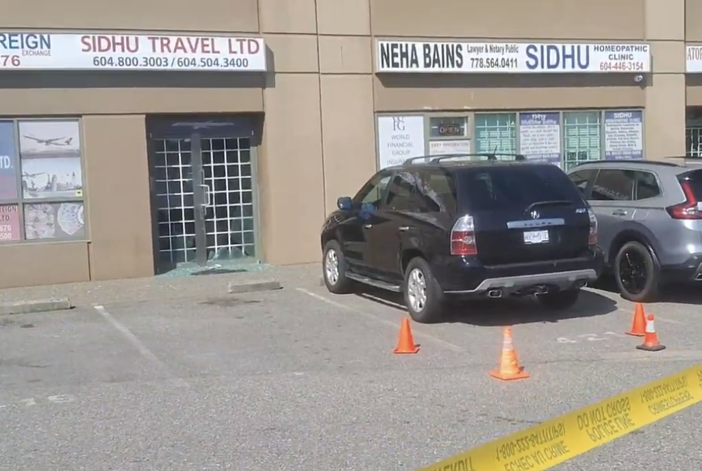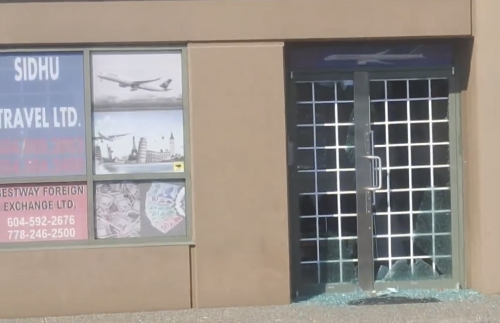 ਸਰੀ ਦੀ 128 ਸਟਰੀਟ ਅਤੇ 80 ਐਵਨਿਊ ਉਪਰ ਸਥਿਤ ਯੌਰਕ ਸੈਂਟਰ ਵਿਚ ਸਿੱਧੂ ਟਰੈਵਲ ਅਤੇ ਬੈਸਟਵੇਅ ਫੌਰਨ ਐਕਸਚੇਂਜ ਦੇ ਮਾਲਕ ਸ ਚਰਨਜੀਤ ਸਿੰਘ ਸੋਨੀ ਸਿੱਧੂ ਨੇ ਦੇਸ ਪ੍ਰਦੇਸ ਟਾਈਮਜ਼ ਨੂੰ ਦੱਸਿਆ ਕਿ ਉਹਨਾਂ ਦੇ ਬਿਜਨੈਸ ਉਪਰ ਇਸ ਗੋਲੀਬਾਰੀ ਦੀ ਖਬਰ ਉਹਨਾਂ ਨੂੰ ਸਵੇਰੇ ਮਿਲੀ। ਪੁਲਿਸ ਮੁਤਾਬਿਕ ਇਹ ਗੋਲੀਬਾਰੀ ਤੜਕੇ ਤਕਰੀਬਨ 3 ਵਜੇ ਦੇ ਕਰੀਬ ਹੋਈ ਤੇ ਹਮਲਾਵਰਾਂ ਨੇ ਮੁੱਖ ਦਰਵਾਜੇ ਉਪਰ ਲਗਪਗ 7 ਗੋਲੀਆਂ ਦਾਗੀਆਂ ਹਨ। ਉਹਨਾਂ ਦੱਸਿਆ ਕਿ ਉਹਨਾਂ ਨੂੰ ਕੁਝ ਸਮਾਂ ਇਕ ਗੈਂਗਸਟਰ ਗਰੁੱਪ ਵਲੋਂ ਇਕ ਮਿਲੀਅਨ ਡਾਲਰ ਦੀ ਫਿਰੌਤੀ ਲਈ ਕਾਲ ਆਈ ਸੀ। ਉਹਨਾਂ ਕਾਲਰ ਨੂੰ ਦੱਸਿਆ ਸੀ ਕਿ ਉਹ ਮਿਹਨਤ ਕਰਕੇ ਆਪਣਾ ਪਰਿਵਾਰ ਪਾਲ ਰਹੇ ਹਨ। ਉਹਨਾਂ ਕੋਲ ਕਿਸੇ ਨੂੰ ਦੇਣ ਲਈ ਕੋਈ ਵਾਧੂ ਪੈਸਾ ਨਹੀ। ਇਸ ਸਬੰਧੀ ਉਹਨਾਂ ਪੁਲਿਸ ਨੂੰ ਰਿਪੋਰਟ ਕੀਤਾ ਸੀ ਪਰ ਪੁਲਿਸ ਨੇ ਕੋਈ ਕਾਰਵਾਈ ਨਹੀ ਕੀਤੀ। ਉਹਨਾਂ ਦੱਸਿਆ ਕਿ ਹੁਣ ਗੈਂਗਸਟਰਾਂ ਵਲੋਂ ਉਹਨਾਂ ਦੇ ਕਾਰੋਬਾਰੀ ਦਫਤਰ ਨੂੰ ਨਿਸ਼ਾਨਾ ਬਣਾਉਂਦਿਆਂ ਇਹ ਗੋਲੀਬਾਰੀ ਕੀਤੀ ਗਈ ਹੈ।ਪੁਲਿਸ ਵਲੋਂ ਸੀਸੀਟੀਵੀ ਫੁਟੇਜ ਦੀ ਕੀਤੀ ਜਾਂਚ ਮੁਤਾਬਿਕ ਦਫਤਰ ਉਪਰ ਤਿੰਨ ਅਣਪਛਾਤੇ ਵਿਅਕਤੀਆਂ ਨੂੰ ਗੋਲੀਬਾਰੀ ਕਰਦੇ ਵੇਖਿਆ ਗਿਆ ਹੈ।