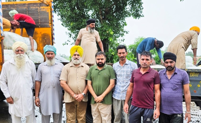 ਫੋਟੋ ਕੈਪਸ਼ਨ- ਹੜ੍ਹ ਪ੍ਰਭਾਵਿਤ ਪਸ਼ੂ ਪਾਲਕਾਂ ਨੂੰ ਸੁੱਕਾ ਚਾਰਾ ਵੰਡਣ ਮੌਕੇ ਪ੍ਰਧਾਨ ਸੁਖਜਿੰਦਰ ਸਿੰਘ ਹੇਰ,ਮਨਪ੍ਰੀਤ ਸੰਧੂ,ਜਰਨੈਲ ਸਿੰਘ ਜ਼ੈਲਦਾਰ ਤੇ ਹੋਰ(ਫੋਟੋ: ਨਈਅਰ ਪੱਤਰਕਾਰ,ਚੋਹਲਾ ਸਾਹਿਬ)