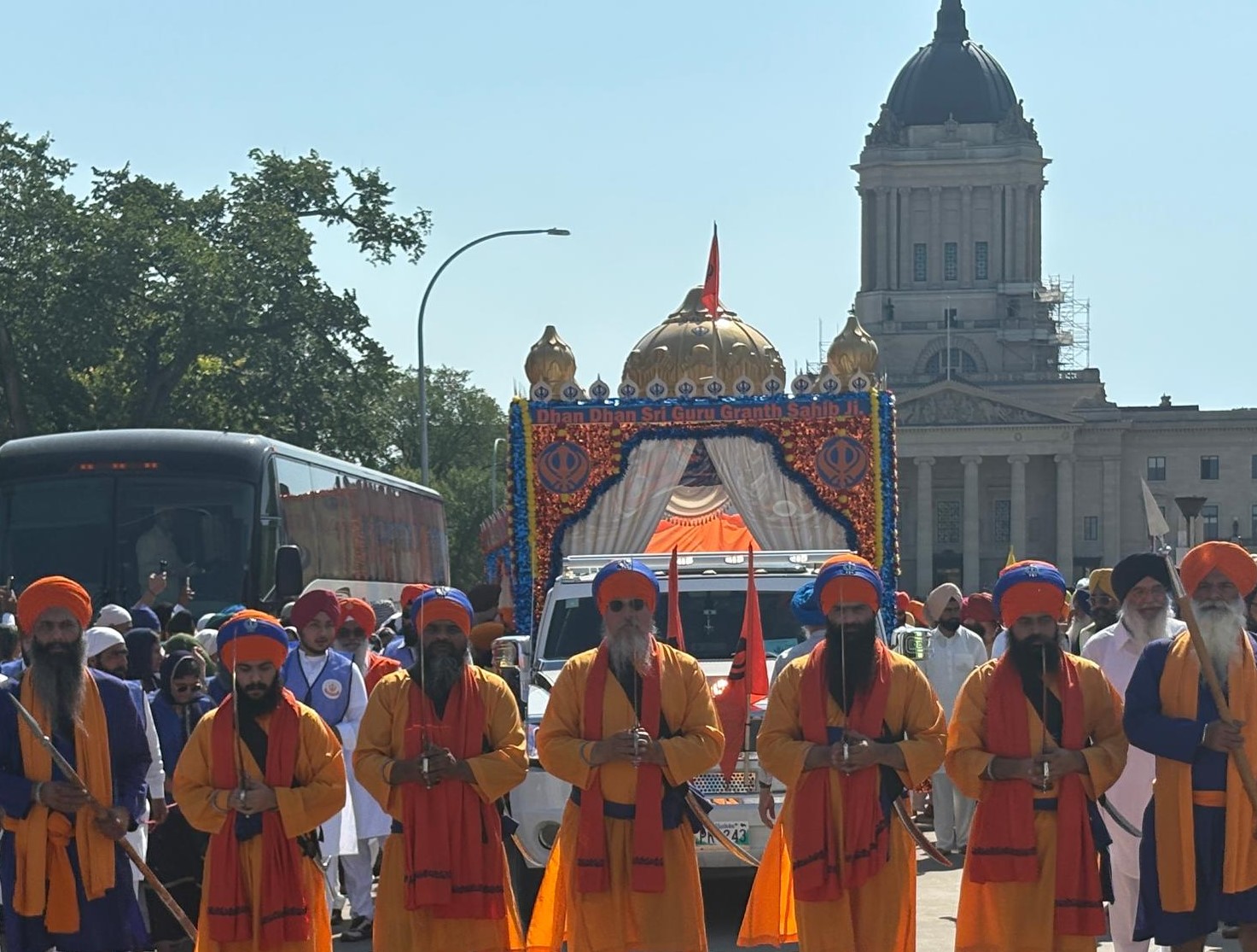 ਵਿੰਨੀਪੈਗ (ਸ਼ਰਮਾ)- ਬੀਤੇ ਦਿਨ ਸਿੱਖ ਸੁਸਾਇਟੀ ਆਫ ਮੈਨੀਟੋਬਾ ਵਲੋਂ ਸ੍ਰੀ ਗੁਰੂ ਗਰੰਥ ਸਾਹਿਬ ਜੀ ਦੇ 421ਵੇਂ ਪ੍ਰਕਾਸ਼ ਪੁਰਬ ਨੂੰ ਸਮਰਪਿਤ 22ਵਾਂ ਨਗਰ ਕੀਰਤਨ ਸ਼ਰਧਾ ਤੇ ਉਤਸ਼ਾਹਪੂਰਵਕ ਆਯੋਜਿਤ ਕੀਤਾ ਗਿਆ। ਦੁਪਹਿਰ 12.30 ਵਜੇ ਮੈਮੋਰੀਅਲ ਪਾਰਕ ਵਿਖੇ ਗਰੰਥੀ ਸਿੰਘ ਵਲੋਂ ਅਰਦਾਸ ਕਰਨ ਉਪਰੰਤ ਪੰਜ ਪਿਆਰਿਆਂ ਦੀ ਅਗਵਾਈ ਹੇਠ ਇਹ ਨਗਰ ਕੀਰਤਨ ਆਰੰਭ ਹੋਇਆ। ਮੈਨੀਟੋਬਾ ਲੈਜਿਸਲੇਚਰ ਬਿਲਡਿੰਗ ਦੇ ਸਾਹਮਣੇ ਪਾਰਕ ਵਿਚ ਭਾਰੀ ਦੀਵਾਨ ਸਜਾਏ ਗਏ ਜਿਥੇ ਰਾਗੀ ਤੇ ਢਾਡੀ ਜਥਿਆਂ ਨੇ ਸੰਗਤਾਂ ਨੂੰ ਸਿੱਖ ਇਤਹਾਸ ਸੁਣਾ ਅਤੇ ਗਾਕੇ ਨਿਹਾਲ ਕੀਤਾ। ਇਸ ਸਟੇਜ ਤੇ ਉਘੀ ਸਿਆਸੀ ਤੇ ਧਾਰਮਿਕ ਹਸਤੀਆਂ ਨੇ ਸੰਗਤਾਂ ਨੂੰ ਨਗਰ ਕੀਰਤਨ ਦੀਆਂ ਵਧਾਈਆਂ ਦਿੱਤੀਆਂ। ਇਸ ਮੌਕੇ ਵੱਖ ਵੱਖ ਬਿਜਨਸ ਅਦਾਰਿਆਂ ਤੇ ਹੋਰ ਸਵੈ ਸੇਵੀ ਸੰਸਥਾਵਾਂ ਵਲੋਂ ਖਾਣ ਪੀਣ ਅਤੇ ਸੁਆਦਲੇ ਭੋਜਨਾਂ ਦੇ ਸਟਾਲ ਵੀ ਲਗਾਏ ਗਏ ਜਿਹਨਾਂ ਦਾ ਸੰਗਤਾਂ ਨੇ ਆਨੰਦ ਮਾਣਿਆ। ਮੈਨੀਟੋਬਾ ਦੇ ਪ੍ਰੀਮੀਅਰ ਵੈੱਬ ਕੀਨਿਊ ਵਿਸ਼ੇਸ਼ ਤੌਰ ’ਤੇ ਨਗਰ ਕੀਰਤਨ ਵਿਚ ਸ਼ਾਮਲ ਹੋਏ ਅਤੇ ਲੰਗਰ ਵਿੱਚ ਸੇਵਾ ਕੀਤੀ। ਸਿੱਖ ਸੋਸਾਇਟੀ ਵੱਲੋਂ ਉਨ੍ਹਾਂ ਨੂੰ ਸ੍ਰੀ ਦਰਬਾਰ ਸਾਹਿਬ ਦਾ ਮਾਡਲ ਅਤੇ ਸਿਰੋਪਾਉ ਭੇਟ ਕਰਕੇ ਸਨਮਾਨਿਤ ਕੀਤਾ ਗਿਆ।ਨਗਰ ਕੀਰਤਨ ਕਮੇਟੀ ਵਲੋਂ ਪ੍ਰਧਾਨ ਹਰਬੰਸ ਸਿੰਘ ਬਰਾੜ, ਪਰਮਜੀਤ ਸਿੰਘ ਗਿੱਲ, ਗਗਨਦੀਪ ਸਿੰਘ ਰਾਏ, ਸਰਬਜੀਤ ਸਿੰਘ ਗਿੱਲ, ਸੁਰਜੀਤ ਸਿੰਘ ਮਠਾਰੂ, ਗੁਰਪ੍ਰੀਤ ਸਿੰਘ ਗਿੱਲ ਅਅਤੇ ਗੁਰਪਾਲ ਸਿੰਘ ਧਾਮੀ ਨੇ ਨਗਰ ਕੀਰਤਨ ਦੀ ਸਫਲਤਾ ਲਈ ਸੰਗਤਾਂ ਦੇ ਸਹਿਯੋਗ ਅਤੇ ਸਾਫ ਸਫਾਈ ਦਾ ਖਾਸ ਖਿਆਲ ਰੱਖਣ ਲਈ ਧੰਨਵਾਦ ਕੀਤਾ ਤੇ ਗੁਰੂ ਮਹਾਰਾਜ ਦਾ ਸ਼ੁਕਰਾਨਾ ਕੀਤਾ। ਇਸ ਦੌਰਾਨ ਦੱਸਿਆ ਗਿਆ ਹੈ ਕਿ ਅੰਮ੍ਰਿਤ ਸੰਚਾਰ 7 ਸਤੰਬਰ ਦਿਨ ਐਤਵਾਰ ਨੂੰ ਸਵੇਰੇ 6.30 ਵਜੇ ਗੁਰਦੁਆਰਾ ਸਿੱਖ ਸੁਸਾਇਟੀ ਵਿਖੇ ਕੀਤਾ ਜਾ ਰਿਹਾ ਹੈ ਜਿਸਦਾ ਸੰਗਤਾਂ ਲਾਹਾ ਲੈ ਸਕਦੀਆਂ ਹਨ।