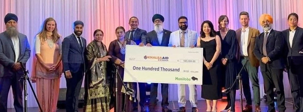 ਵਿੰਨੀਪੈਗ ( ਸ਼ਰਮਾ)- ਪੰਜਾਬ ਵਿਚ ਆਏ ਹੜਾਂ ਕਾਰਣ ਪ੍ਰਭਾਵਿਤ ਲੋਕਾਂ ਦੀ ਮਦਦ ਲਈ ਦੇਸ਼ ਵਿਦੇਸ਼ ਵਿਚ ਦਾਨੀ ਲੋਕਾਂ ਵਲੋਂ ਹਰ ਤਰਾਂ ਦੀ ਸਹਾਇਤਾ ਲਈ ਉਪਰਾਲੇ ਕੀਤੇ ਜਾ ਰਹੇ ਹਨ। ਬੀਤੇ ਦਿਨ ਮੈਨੀਟੋਬਾ ਦੀ ਸਰਕਾਰ ਵਲੋਂ ਪੰਜਾਬ ਦੇ ਹੜ ਪੀੜਤਾਂ ਦੀ ਸਹਾਇਤਾ ਲਈ ਇਕ ਲੱਖ ਡਾਲਰ ਦਾ ਚੈਕ ਖਾਲਸਾ ਏਡ ਸੰਸਥਾ ਨੂੰ ਭੇਟ ਕੀਤਾ ਗਿਆ। ਇਹ ਚੈਕ ਮੈਨੀਟੋਬਾ ਦੇ ਪ੍ਰੀਮੀਅਰ ਵੈਬ ਕੈਨਿਊ ਤੇ ਸਹਿਯੋਗੀਆਂ ਵਲੋਂ ਖਾਲਸਾ ਏਡ ਦੇ ਮੁੱਖੀ ਰਵੀ ਸਿੰਘ ਖਾਲਸਾ ਜੋ ਇਥੇ ਉਚੇਚੇ ਤੌਰ ਤੇ ਪੁੱਜੇ ਸਨ, ਨੂੰ ਭੇਟ ਕੀਤਾ ਗਿਆ। ਇਸ ਮੌਕੇ ਐਮ ਐਲ ਏ ਮਿੰਟੂ ਸੰਧੂ, ਐਮ ਐਲ ਏ ਦਿਲਜੀਤ ਬਰਾੜ ਤੇ ਹੋਰ ਕਈ ਉਘੀਆਂ ਹਸਤੀਆਂ ਹਾਜ਼ਰ ਸਨ। ਪ੍ਰੀਮੀਅਰ ਕੈਨਿਊ ਨੇ ਇਹ ਚੈਕ ਭੇਟ ਕਰਦਿਆਂ ਖਾਲਸਾ ਏਡ ਵਲੋਂ ਹੜਪੀੜਤਾਂ ਦੀ ਮਦਦ ਲਈ ਕੀਤੇ ਜਾ ਰਹੇ ਉਪਰਾਲਿਆਂ ਅਤੇ ਵਲੰਟੀਅਰਾਂ ਵਲੋਂ ਕੀਤੀ ਜਾ ਰਹੀ ਸੇਵਾ ਦੀ ਜ਼ੋਰਦਾਰ ਸ਼ਲਾਘਾ ਕੀਤੀ।