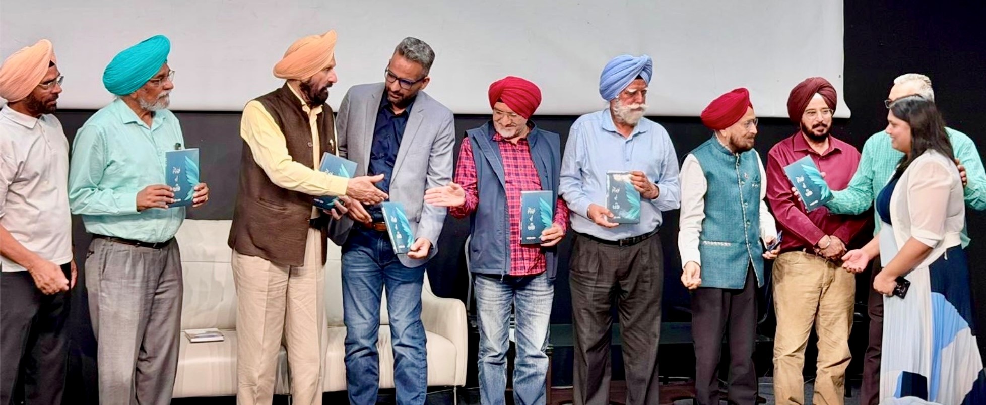 ਸਰੀ, 23 ਅਕਤੂਬਰ (ਹਰਦਮ ਮਾਨ)-ਬੀਤੇ ਦਿਨ ਗੁਲਾਟੀ ਪਬਲਿਸ਼ਰਜ਼ ਸਰੀ ਵਿਖੇ ਮਨਪ੍ਰੀਤ ਕਲੇਰ ਦੀ ਕਾਵਿ-ਪੁਸਤਕ ‘ਸੋਚਾਂ ਦੇ ਖੰਭ ਰਿਲੀਜ਼ ਕੀਤੀ ਗਈ। ਪੁਸਤਕ ਲੋਕ ਅਰਪਣ ਕਰਨ ਦੀ ਰਸਮ ਵੈਨਕੂਵਰ ਵਿਚਾਰ ਮੰਚ ਦੇ ਸਰਪ੍ਰਸਤ ਅਤੇ ਪ੍ਰਸਿੱਧ ਨਾਵਲਕਾਰ ਜਰਨੈਲ ਸਿੰਘ ਸੇਖਾ, ਸ਼ਾਇਰ ਮੋਹਨ ਗਿੱਲ, ਫਿਲਮ ਅਦਾਕਾਰ ਅੰਗਰੇਜ਼ ਬਰਾੜ, ਨਾਟ-ਕਰਮੀ ਸਰਦੂਲ ਸਿੰਘ ਮਾਨ, ਕਵਿੱਤਰੀ ਬਮਲਜੀਤ ਮਾਨ, ਸ਼ਾਇਰ ਸਤੀਸ਼ ਗੁਲਾਟੀ, ਹਰਦਮ ਮਾਨ ਅਤੇ ਕਰਮਜੀਤ ਮਾਨ ਨੇ ਅਦਾ ਕੀਤੀ।