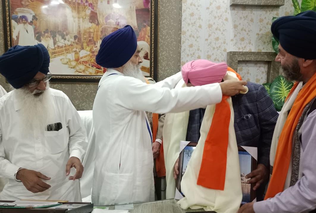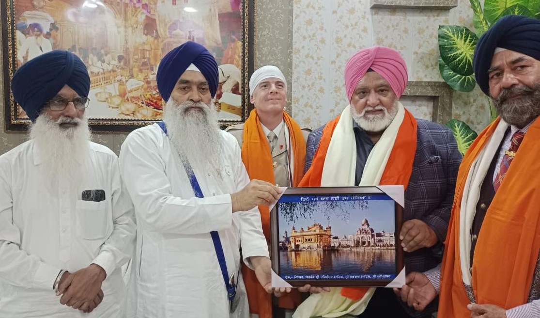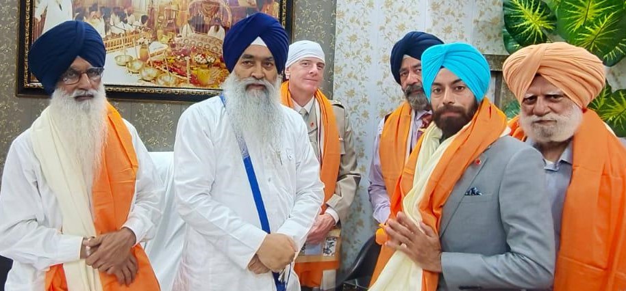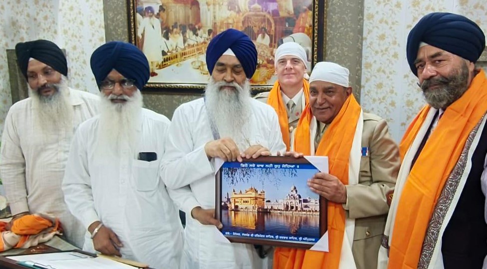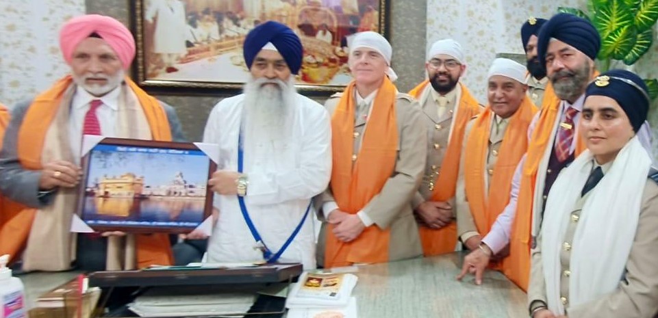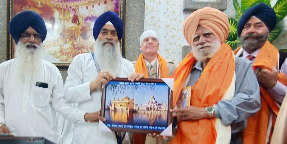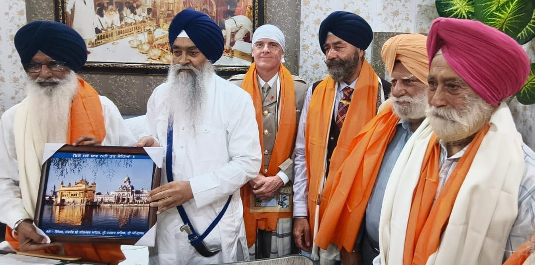 ਅੰਮ੍ਰਿਤਸਰ -ਬੀਤੇ ਦਿਨ ਸਾਰਾਗੜੀ ਵਰਲਡ ਫਾਊਡੇਸ਼ਨ ਦੇ ਇਕ ਵਫਦ ਨੇ ਦਰਬਾਰ ਸ੍ਰੀ ਹਰਿਮੰਦਰ ਸਾਹਿਬ ਦੇ ਦਰਸ਼ਨ ਕੀਤੇ। ਉਪਰੰਤ ਦਰਬਾਰ ਸਾਹਿਬ ਦੇ ਹੈਡ ਗਰੰਥੀ ਤੇ ਸ੍ਰੀ ਅਕਾਲ ਤਖਤ ਸਾਹਿਬ ਦੇ ਸਾਬਕਾ ਜਥੇਦਾਰ ਗਿਆਨੀ ਰਘਬੀਰ ਨਾਲ ਇਕ ਮੁਲਾਕਾਤ ਕੀਤੀ। ਇਸ ਮੌਕੇ  ਗਿਆਨੀ ਰਘੂਵੀਰ ਸਿੰਘ ਜੀ ਨੇ ਸਾਰਾਗੜ੍ਹੀ ਦੇ ਸ਼ਹੀਦਾਂ ਦੀ ਯਾਦ ਨੂੰ ਨਮਨ ਕਰਨ ਆਏ ਯੂਕੇ ਦੇ ਡੈਲੀਗੇਟਸ ਨੂੰ ਗੁਰੂ ਘਰ ਦੀ ਬਖਸ਼ਿਸ਼ ਸਿਰਪਾਓ ਦੇਕੇ  ਨਿਵਾਜਿਆ। ਇਸ ਮੌਕੇ ਸਾਰਾਗੜ੍ਹੀ ਵਰਲਡ ਫਾਉਂਡੇਸ਼ਨ ਦੇ ਉਪ ਪ੍ਰਧਾਨ ਜਤਿੰਦਰ ਜੇ ਮਿਨਹਾਸ ਦਾ ਵੀ ਵਿਸ਼ੇਸ਼ ਸਨਮਾਨ ਕੀਤਾ ਗਿਆ।