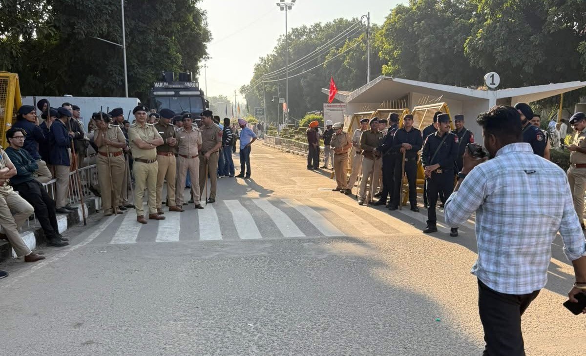 10 ਨਵੰਬਰ 2025 ਦੀ ਸਵੇਰ — ਕੈਂਪਸ ਦੇ ਗੇਟ ਨੰਬਰ 1, 2 ਤੇ 3 ‘ਤੇ ਭਾਰੀ ਪੁਲਿਸ ਤਾਇਨਾਤੀ। ਲਗਭਗ 2000 ਪੁਲਿਸ ਕਰਮੀ, ਬੈਰੀਕੇਡਾਂ, ਵਾਹਨ ਤੇ ਸੁਰੱਖਿਆ ਵਾਹਕਾਂ ਦੇ ਨਾਲ ਮੌਜੂਦ ਰਹੇ। ਪਰ ਵਿਦਿਆਰਥੀ ਪਿੱਛੇ ਨਹੀਂ ਹਟੇ। ਉਨ੍ਹਾਂ ਨੇ ਗੇਟ ਨੰਬਰ 1 ਦੀਆਂ ਲੋਹੇ ਦੀਆਂ ਰੋਕਾਂ ਹਟਾ ਕੇ ਅੰਦਰ ਦਾਖਲ ਹੋਣ ਦੀ ਕੋਸ਼ਿਸ਼ ਕੀਤੀ। ਪੁਲਿਸ ਨਾਲ ਛੋਟਾ-ਜਿਹਾ ਟਕਰਾਅ ਹੋਇਆ।