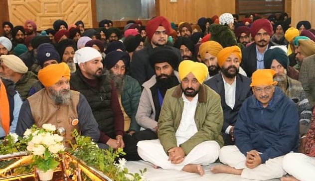 ਸ੍ਰੀਨਗਰ (ਜੰਮੂ-ਕਸ਼ਮੀਰ), 18 ਨਵੰਬਰ:-ਪੰਜਾਬ ਦੇ ਮੁੱਖ ਮੰਤਰੀ ਭਗਵੰਤ ਸਿੰਘ ਮਾਨ ਅਤੇ ‘ਆਪ’ ਦੇ ਰਾਸ਼ਟਰੀ ਕਨਵੀਨਰ ਅਰਵਿੰਦ ਕੇਜਰੀਵਾਲ ਅੱਜ ਇੱਥੇ ਗੁਰਦੁਆਰਾ ਛੇਵੀਂ ਪਾਤਸ਼ਾਹੀ ਵਿਖੇ ਸਿੱਖ ਸੰਗਤ ਨਾਲ ਸੂਬਾ ਸਰਕਾਰ ਵੱਲੋਂ ਸ੍ਰੀ ਗੁਰੂ ਤੇਗ਼ ਬਹਾਦਰ ਜੀ ਦੇ 350ਵੇਂ ਸ਼ਹੀਦੀ ਦਿਹਾੜੇ ਮੌਕੇ ਕਰਵਾਏ ਗਏ ਕੀਰਤਨ ਦਰਬਾਰ ਵਿੱਚ ਸ਼ਾਮਲ ਹੋਏ।
