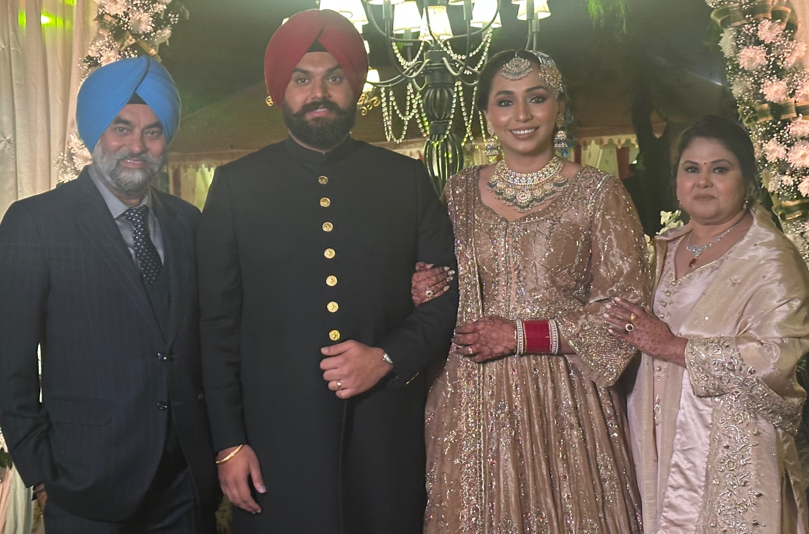 ਅੰਮ੍ਰਿਤਸਰ- ਬੀਤੇ ਦਿਨੀਂ ਸਰੀ (ਕੈਨੇਡਾ) ਨਿਵਾਸੀ ਡਾ ਸੁਖਦੀਪ ਸਿੰਘ ਗਿੱਲ ( ਸੇਵਾ ਮੁਕਤ ਖੇਤੀਬਾੜੀ ਅਧਿਕਾਰੀ ) ਤੇ ਸਰਦਾਰਨੀ ਹਰਪ੍ਰੀਤ ਕੌਰ ਗਿੱਲ ਦੇ ਸਪੁੱਤਰ ਬਖਸ਼ਪ੍ਰੀਤ ਸਿੰਘ ਗਿੱਲ ਦਾ ਸ਼ੁਭ ਵਿਆਹ ਬੀਬਾ ਨਵਜੋਤ ਕੌਰ ਬਰਾੜ (ਸਪੁੱਤਰੀ ਸਵਰਗੀ ਸ ਰਵਿੰਦਰਪਾਲ ਸਿੰਘ ਬਰਾੜ ਤੇ ਸਰਦਾਰਨੀ ਸਵਰਨ ਕੌਰ ਬਰਾੜ) ਨਾਲ ਫਰੀਦਕੋਟ ਵਿਖੇ ਪੂਰਨ ਗੁਰਮਰਿਯਾਦਾ ਨਾਲ ਹੋਇਆ। ਉਪਰੰਤ ਸ਼ਾਨਦਾਰ ਰਿਸੈਪਸ਼ਨ ਪਾਰਟੀ ਅੰਮ੍ਰਿਤਸਰ ਦੇ ਅਮੀਰਾ ਫਾਰਮ ਵਿਖੇ ਕੀਤੀ ਗਈ। ਵਿਆਹ ਸਮਾਗਮਾਂ ਤੇ ਰਿਸੈਪਸ਼ਨ ਵਿਚ ਵੱਡੀ ਗਿਣਤੀ ਵਿਚ ਰਿਸ਼ਤੇਦਾਰਾਂ ਤੇ ਮਹਿਮਾਨ ਸੱਜਣਾਂ ਨੇ ਸ਼ਮੂਲੀਅਤ ਕੀਤੀ ਤੇ ਨਵ ਵਿਆਹੀ ਜੋੜੀ ਨੂੰ ਅਸ਼ੀਰਵਾਦ ਦਿੱਤਾ ਅਤੇ ਦੋਵਾਂ ਪਰਿਵਾਰਾਂ ਨਾਲ ਵਧਾਈਆਂ ਸਾਂਝੀਆਂ ਕੀਤੀਆਂ।