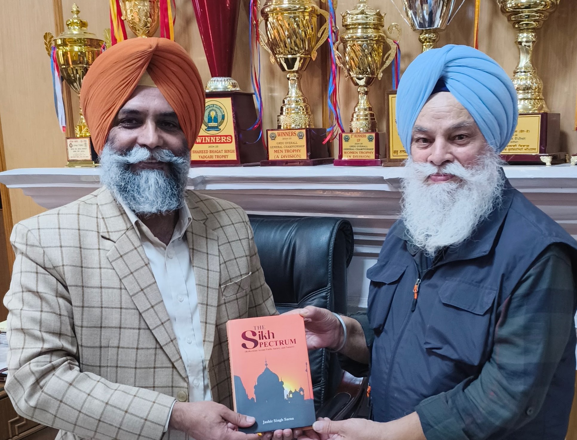 ਅੰਮ੍ਰਿਤਸਰ, 9 ਦਸੰਬਰ 2025- ਪ੍ਰਸਿੱਧ ਵਿਦਵਾਨ ਤੇ ਲੇਖਕ ਡਾ. ਜਸਬੀਰ ਸਿੰਘ ਸਰਨਾ ਦੀ ਤਾਜ਼ਾ ਪੁਸਤਕ ‘ਦ ਸਿੱਖ ਸਪੈਕਟ੍ਰਮ’ ਬੀਤੇ ਦਿਨ ਖਾਲਸਾ ਕਾਲਜ ਅੰਮ੍ਰਿਤਸਰ ਦੇ ਪ੍ਰਿੰਸੀਪਲ ਡਾ. ਆਤਮ ਸਿੰਘ ਰੰਧਾਵਾ ਵੱਲੋਂ ਉਹਨਾਂ ਦੇ ਦਫਤਰ ਵਿਚ ਇਕ ਸੰਖੇਪ ਸਮਾਰੋਹ ਦੌਰਾਨ ਰਿਲੀਜ਼ ਕੀਤੀ ਗਈ।