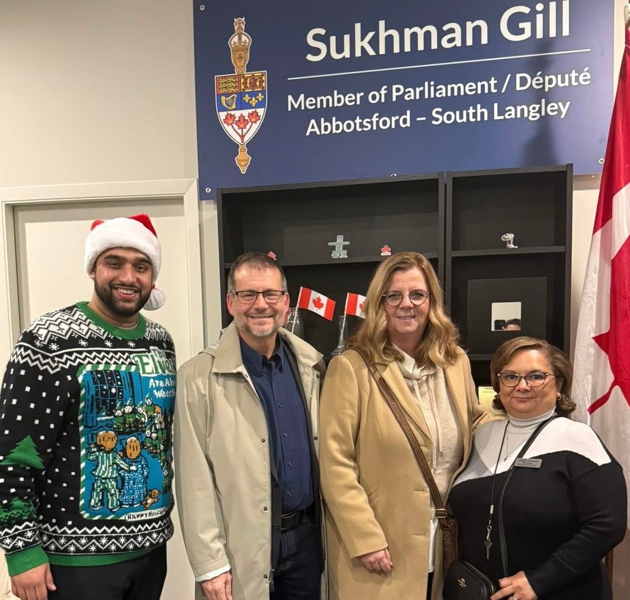 ਐਬਸਫੋਰਡ- ਬੀਤੇ ਦਿਨ ਐਬਸਫੋਰਡ-ਸਾਉਥ ਲੈਂਗਲੀ ਤੋਂ ਕੰਸਰਵੇਟਿਵ ਐਮ ਪੀ ਸੁਖਮਨ ਗਿੱਲ ਵਲੋਂ ਕ੍ਰਿਸਮਸ ਫੈਸਟੀਵਲ ਦੇ ਸਬੰਧ ਵਿਚ ਆਪਣਾ ਹਲਕਾ ਦਫਤਰ 205-2825 ਕਲੀਅਰਬਰੁੱਕ ਰੋਡ ਐਬਸਫੋਰਡ ਵਿਖੇ ਕ੍ਰਿਸਮਸ ਓਪਨ ਹਾਊਸ ਪਾਰਟੀ ਦਾ ਆਯੋਜਨ ਕੀਤਾ ਗਿਆ। ਇਸ ਦੌਰਾਨ ਵੱਡੀ ਗਿਣਤੀ ਵਿਚ ਹਲਕੇ ਦੇ ਵਸਨੀਕਾਂ, ਕਾਰੋਬਾਰੀਆਂ ਤੇ ਉਘੀਆਂ ਹਸਤੀਆਂ ਨੇ ਸ਼ਮੂਲੀਅਤ ਕੀਤੀ ਤੇ ਕ੍ਰਿਸਮਸ ਦੀਆਂ ਵਧਾਈਆਂ ਸਾਂਝੀਆਂ ਕੀਤੀਆਂ। ਇਸ ਮੌਕੇ ਐਮ ਪੀ ਸੁਖਮਨ ਗਿੱਲ ਨੇ ਆਏ ਮਹਿਮਾਨਾਂ ਦਾ ਸਵਾਗਤ ਕੀਤਾ ਤੇ ਤਿਊਹਾਰ ਦੀਆਂ ਸ਼ੁਭਕਾਮਾਨਾਵਾਂ ਸਾਂਝੀਆਂ ਕੀਤੀਆਂ। ਇਸ ਮੌਕੇ ਫੂਡ ਬੈਂਕ ਵਾਸਤੇ ਖਾਣ ਪੀਣ ਦੀਆਂ ਵਸਤਾਂ ਵੀ ਇਕੱਤਰ ਕੀਤੀਆਂ ਗਈਆਂ ਜਿਸ ਲਈ ਉਹਨਾਂ ਹਲਕਾ ਨਿਵਾਸੀਆਂ ਦਾ ਵਿਸ਼ੇਸ਼ ਧੰਨਵਾਦ ਕੀਤਾ।