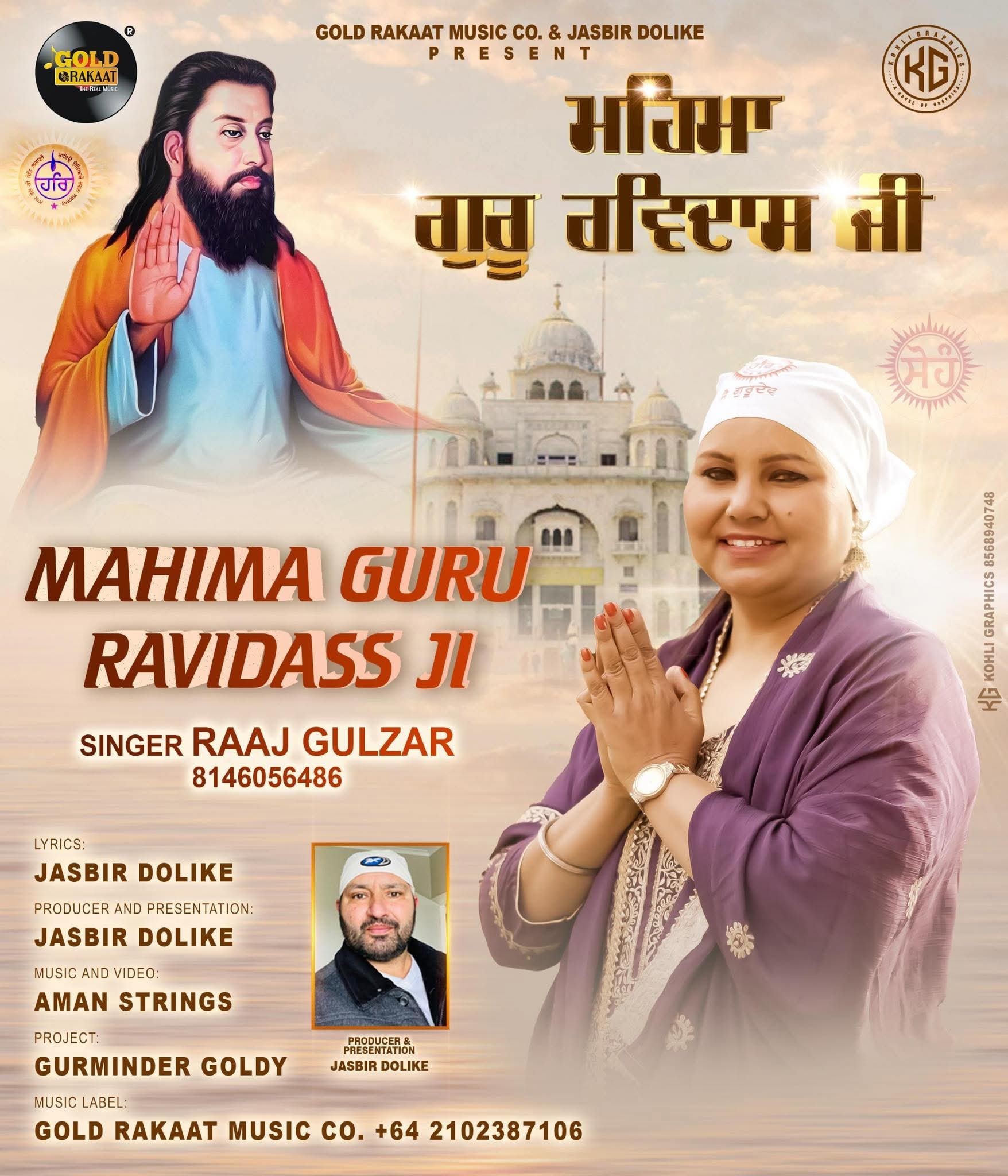 ਸਰੀ/ ਵੈਨਕੂਵਰ (ਕੁਲਦੀਪ ਚੁੰਬਰ)- ਗੋਲਡ ਰਿਕਾਰਡ ਮਿਊਜ਼ਿਕ ਕੰਪਨੀ ਵਲੋਂ ਸਿੰਗਰ ਰਾਜ਼ ਗੁਲਜ਼ਾਰ ਦਾ ਧਾਰਮਿਕ ਟ੍ਰੈਕ “ਮਹਿਮਾ ਗੁਰੂ ਰਵਿਦਾਸ ਜੀ” ਰਿਲੀਜ਼ ਕੀਤਾ ਗਿਆ। ਇਸ ਟ੍ਰੈਕ ਨੂੰ ਜਸਬੀਰ ਦੋਲੀਕੇ ਵਲੋਂ ਲਿਖਿਆ ਗਿਆ ਹੈ । ਇਸ ਦਾ ਮਿਊਜ਼ਿਕ ਅਮਨ ਸਟ੍ਰਿੰਗ ਵਲੋਂ ਤਿਆਰ ਕੀਤਾ ਗਿਆ ਹੈ । ਇਸ ਦੀ ਵੀਡੀਉ ਡੇਰਾ ਸੱਚਖੰਡ ਬੱਲਾਂ ਵਿਖੇ ਵੱਖ ਵੱਖ ਲੋਕੇਸਨਾਂ ਤੇ ਵੀਡੀਉ ਡਾਇਰੈਕਟਰ ਵਲੋਂ ਸ਼ੂਟ ਕੀਤਾ ਗਿਆ ਹੈ । ਇਸ ਟ੍ਰੈਕ ਨੂੰ ਗੁਰਮਿੰਦਰ ਗੋਲਡੀ ਵਲੋਂ ਰਿਕਾਡਿੰਗ ਕੀਤਾ ਗਿਆ। ਇਸ ਟ੍ਰੈਕ ਨੂੰ ਗੋਲਡ ਰਿਕਾਰਡ ਮਿਊਜ਼ਿਕ ਕੰਪਨੀ ਨਿਊਜ਼ੀਲੈਂਡ ਵਲੋਂ ਵੱਡੇ ਪੱਧਰ ਤੇ ਰਿਲੀਜ਼ ਕੀਤਾ ਗਿਆ ਹੈ । ਇਸ ਟ੍ਰੈਕ ਨੂ ਵੱਖ ਵੱਖ ਚੈਨਲਾਂ ਤੇ ਚਲਾਇਆ ਜਾ ਰਿਹਾ ਹੈ। ਇਸ ਟ੍ਰੈਕ ਨੂੰ ਯੂਟਿਊਬ ਅਤੇ ਸੋਸ਼ਲ ਮੀਡੀਆ ਦੀਆਂ ਵੱਖ ਸਾਈਟਾਂ ਤੇ ਅੱਪਲੋਡ ਕੀਤਾ ਗਿਆ ਹੈ । ਅਸੀਂ ਸਮੁੱਚੀ ਟੀਮ ਲਈ ਦਿਲੋਂ ਕਾਮਨਾਵਾਂ ਕਰਦੇ ਹਾਂ ਕਿ ਕੰਪਨੀ ਅਤੇ ਪੂਰੀ ਟੀਮ ਦਿਨ ਦੁੱਗਣੀ ਤਰੱਕੀ ਕਰੇ । ਸਰੋਤਿਆਂ ਦੀ ਪਹਿਲੀ ਪਸੰਦ ਬਣੇ । ਆਸ ਕਰਦੇ ਹਾਂ ਕਿ ਰਾਜ ਗੁਲਜ਼ਾਰ ਦੇ ਪਹਿਲੇ ਗੀਤਾਂ ਵਾਂਗ ਇਸ ਨਵੇਂ ਆਏ ਧਾਰਮਿਕ ਟਰੈਕ ਨੂੰ ਵੀ ਪਿਆਰ ਬਖਸ਼ੋ ਜੀ ।
