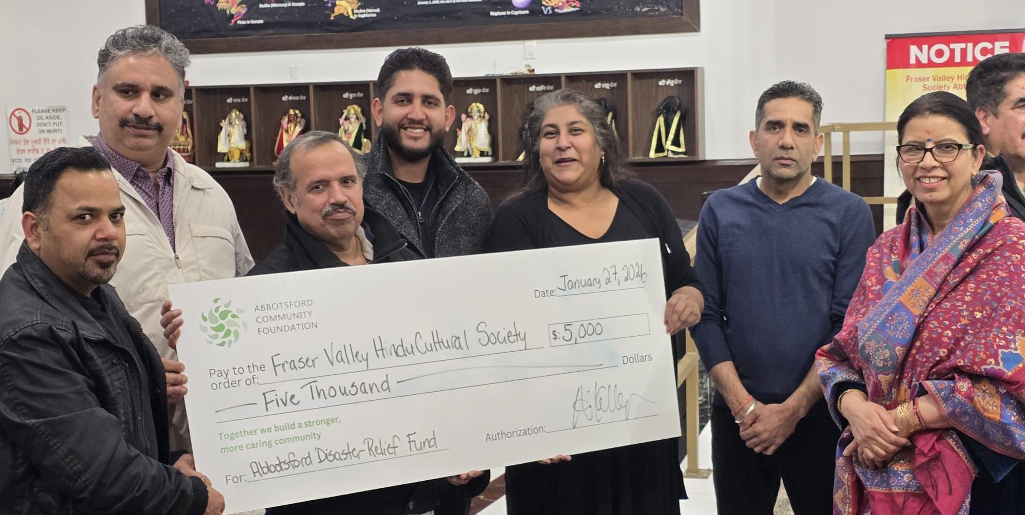 ਐਬਸਫੋਰਡ – ਕੈਨੇਡਾ ਵਿਚ ਕਿਸੇ ਕੁਦਰਤੀ ਆਫਤ ਜਾਂ ਕਿਸੇ ਹੋਰ ਸੰਕਟ ਵਿਚ ਘਿਰੇ ਲੋਕਾਂ ਦੀ ਮਦਦ ਲਈ ਸਿੱਖ ਸੰਸਥਾਵਾਂ ਤੇ ਵਲੰਟੀਅਰਾਂ ਵਲੋਂ ਵਧ ਚੜਕੇ ਹਿੱਸਾ ਲਿਆ ਜਾਂਦਾ ਹੈ।ਪਿਛਲੇ ਸਮੇਂ ਦੌਰਾਨ ਕੋਵਿਡ ਅਤੇ ਐਬਸਫੋਰਡ ਵਿਚ ਆਏ ਹੜਾਂ ਦੌਰਾਨ ਵੱਖ ਵੱਖ ਸਿੱਖ ਸੰਸਥਾਵਾਂ ਤੇ ਧਾਰਮਿਕ ਅਸਥਾਨਾਂ ਦੇ ਸੇਵਾਦਾਰਾਂ ਤੇ ਵਲੰਟੀਅਰਾਂ ਵਲੋਂ ਲੋੜਵੰਦਾਂ ਦੀ ਭਰਪੂਰ ਮਦਦ ਕੀਤੀ ਗਈ। ਐਬਸਫੋਰਡ ਵਿਚ ਆਏ ਹੜਾਂ ਦੌਰਾਨ ਸਵੈ ਸੇਵੀ ਸੰਸਥਾਵਾਂ ਤੇ ਗੁਰੂ ਘਰਾਂ ਵਲੋੋਂ ਪੀੜਤਾਂ ਲਈ ਭਰਵੀਂ ਮਦਦ ਦੇ ਨਾਲ ਹੈਲੀਕਾਪਟਰ ਰਾਹੀਂ ਲੰਗਰ ਅਤੇ ਹੋਰ ਸਹਾਇਤਾ ਵੀ ਪਹੁੰਚਾਈ ਗਈ। ਇਹਨਾਂ ਸੰਸਥਾਵਾਂ ਵਲੋਂ ਕੀਤੀ ਗਈ ਇਸ ਸੇਵਾ ਲਈ ਐਬਸਫੋਰਡ ਦੇ ਸਕੂਲ ਟਰੱਸਟੀ ਤੇ ਨੌਜਵਾਨ ਆਗੂ ਅਰਸ਼ ਕਲੇਰ ਦੇ ਯਤਨਾਂ ਨਾਲ ਐਬਸਫੋਰਡ ਕਮਿਊਨਿਟੀ ਫਾਉਂਡੇਸ਼ਨ ਤੋ 20 ਹਜ਼ਾਰ ਡਾਲਰ ਦੀ ਗਰਾਂਟ ਹਾਸਲ ਕੀਤੀ ਗਈ। ਬੀਤੇ ਦਿਨ ਇਹ ਗਰਾਂਟ ਐਬਸਫੋਰਡ ਦੇ ਤਿੰਨ ਗੁਰੂ ਘਰਾਂ ਤੇ ਮੰਦਿਰ ਦੇ ਪ੍ਰਬੰਧਕਾਂ ਨੂੰ ਭੇਟ ਕੀਤੀ ਗਈ। ਸਕੂਲ ਟਰੱਸਟੀ ਅਰਸ਼ ਕਲੇਰ ਨੇ ਦੇਸ ਪ੍ਰਦੇਸ ਨੂੰ ਦੱਸਿਆ ਕਿ ਐਬਸਫੋਰਡ ਕਮਿਊਨਿਟੀ ਫਾਊਂਡੇਸ਼ਨ ਤੋਂ ਹਾਸਲ 20 ਹਜ਼ਾਰ ਗਰਾਂਟ ਨੂੰ ਚਾਰ ਹਿੱਸਿਆ ਵਿਚ ਖਾਲਸਾ ਦੀਵਾਨ ਸੁਸਾਇਟੀ ਐਬਸਫੋਰਡ, ਗੁਰਦੁਆਰਾ ਗੁਰੂ ਕਲਗੀਧਰ ਸੁਸਾਇਟੀ ਐਬਸਫੋਰਡ, ਬਾਬਾ ਬੰਦਾ ਸਿੰਘ ਬਹਾਦਰ ਸਿੱਖ ਸੁਸਾਇਟੀ ਤੇ ਫਰੇਜ਼ਰ ਵੈਲੀ ਹਿੰਦੂ ਕਲਚਰ ਸੁਸਾਇਟੀ ਐਬਸਫੋਰਡ ਦੇ ਪ੍ਰਬੰਧਕਾਂ ਨੂੰ 5-5 ਹਜ਼ਾਰ ਡਾਲਰ ਦੇ ਚੈਕ ਭੇਟ ਕੀਤੇ ਗਏ।