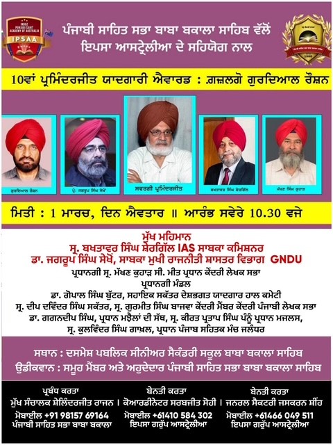 ਇਪਸਾ ਵੱਲੋਂ ਪ੍ਰਮਿੰਦਰਜੀਤ ਯਾਦਗਾਰੀ ਪੁਰਸਕਾਰ ਪੰਜਾਬੀ ਸਾਹਿਤ ਸਭਾ ਬਾਬਾ ਬਕਾਲਾ ਸਾਹਿਬ ਦੀ ਸਰਪ੍ਰਸਤੀ ਤਹਿਤ ਦਿੱਤਾ ਹੈ, ਜਿਸਦੇ ਮੁੱਖ ਸੰਚਾਲਕ ਸ਼ੈਲਿੰਦਰਜੀਤ ਸਿੰਘ ਰਾਜਨ ਹਨ। ਇਸ ਪੁਰਸਕਾਰ ਵਿਚ 21 ਹਜ਼ਾਰ ਦੀ ਰਾਸ਼ੀ, ਇਕ ਸੋਵੀਨਾਰ ਅਤੇ ਦੁਸ਼ਾਲਾ ਸਬੰਧਿਤ ਸ਼ਖ਼ਸੀਅਤ ਨੂੰ ਭੇਂਟ ਕੀਤਾ ਜਾਂਦਾ ਹੈ। ਜ਼ਿਕਰਯੋਗ ਹੈ ਕਿ ਇਹ ਵੱਕਾਰੀ ਪੁਰਸਕਾਰ ਹੁਣ ਤੀਕ ਡਾ. ਮੋਹਨਜੀਤ, ਡਾ. ਜਗਵਿੰਦਰ ਜੋਧਾ, ਡਾ. ਰਵਿੰਦਰ, ਡਾ. ਪਾਲ ਕੌਰ, ਹਰਭਜਨ ਹੁੰਦਲ, ਦਰਸ਼ਨ ਬੁੱਟਰ, ਪ੍ਰੋ. ਕੁਲਵੰਤ ਔਜਲਾ, ਮਿੰਦਰਪਾਲ ਭੱਠਲ ਅਤੇ ਵਿਸ਼ਾਲ ਬਿਆਸ ਨੂੰ ਦਿੱਤਾ ਜਾ ਚੁੱਕਾ ਹੈ। ਇਹ ਪੁਰਸਕਾਰ ਸਮਾਰੋਹ ਮਿਤੀ 1 ਮਾਰਚ ਦਿਨ ਐਤਵਾਰ ਨੂੰ ਦਸਮੇਸ਼ ਪਬਲਿਕ ਸੀਨੀਅਰ ਸੈਕੰਡਰੀ ਸਕੂਲ ਬਾਬਾ ਬਕਾਲਾ ਸਾਹਿਬ ਵਿਖੇ ਕਰਵਾਇਆ ਜਾ ਰਿਹਾ ਹੈ। ਇਸ ਮੌਕੇ ਹਾਜ਼ਰੀਨ ਕਵੀਆਂ ਤੇ ਆਧਾਰਤ ਕਵੀ ਦਰਬਾਰ ਵੀ ਰਚਾਇਆ ਜਾਵੇਗਾ। ਸਮੂਹ ਲੋਕ ਹਿਤੈਸ਼ੀ ਅਦਬੀ ਪ੍ਰੇਮੀਆਂ ਅਤੇ ਲੇਖਕ ਭਾਈਚਾਰੇ ਨੂੰ ਸ਼ਮੂਲੀਅਤ ਲਈ ਬੇਨਤੀ ਹੈ।