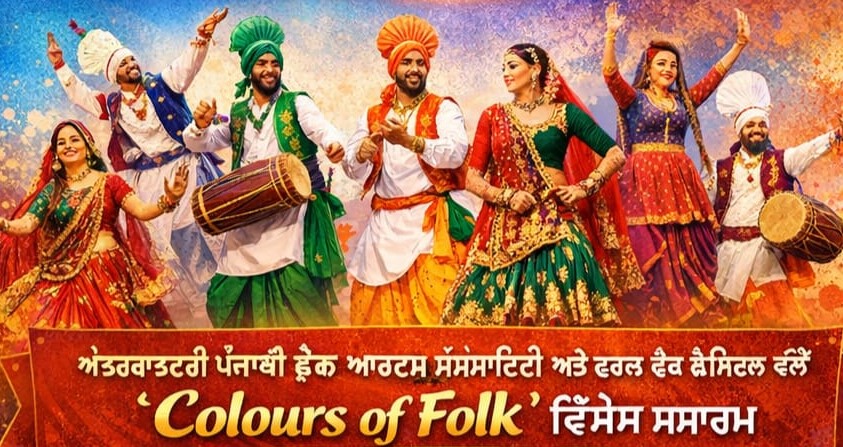 ਸਰੀ (ਮਹੇਸ਼ਇੰਦਰ ਸਿੰਘ ਮਾਂਗਟ )- ਅੰਤਰਰਾਸ਼ਟਰੀ ਪੰਜਾਬੀ ਫੋਕ ਆਰਟਸ ਸੋਸਾਇਟੀ ਅਤੇ ਵਰਲਡ ਫੋਕ ਫੈਸਟੀਵਲ ਵੱਲੋਂ “ ਕਲਰਜ ਆਫ ਫੋਕ (Colours of Folk)  ਨਾਮਕ ਵਿਸ਼ੇਸ਼ ਸਮਾਗਮ ਦਾ ਆਯੋਜਨ ਕੀਤਾ ਜਾ ਰਿਹਾ ਹੈ, ਜੋ ਕਿ ਵੱਖ-ਵੱਖ ਦੇਸ਼ਾਂ ਦੇ ਲੋਕ ਨ੍ਰਿਤ, ਸੰਗੀਤ ਅਤੇ ਸਭਿਆਚਾਰਾਂ ਨੂੰ ਇਕੱਠੇ ਮੰਚ ‘ਤੇ ਲਿਆਂਦਾ ਜਾਵੇਗਾ।
