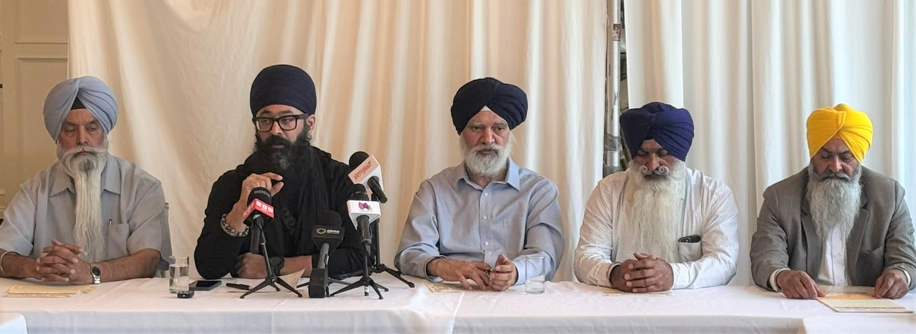 ਤਾਜ ਬੈਂਕੁਇਟ ਹਾਲ ਸਰੀ ਵਿਖੇ ਪ੍ਰੈਸ ਕਾਨਫਰੰਸ ਨੂੰ ਸੰਬੋਧਨ ਕਰਦੇ ਹੋਏ ਸਰੀ ਨਗਰ ਕੀਰਤਨ ਦੇ ਪ੍ਰਬੰਧਕ।
