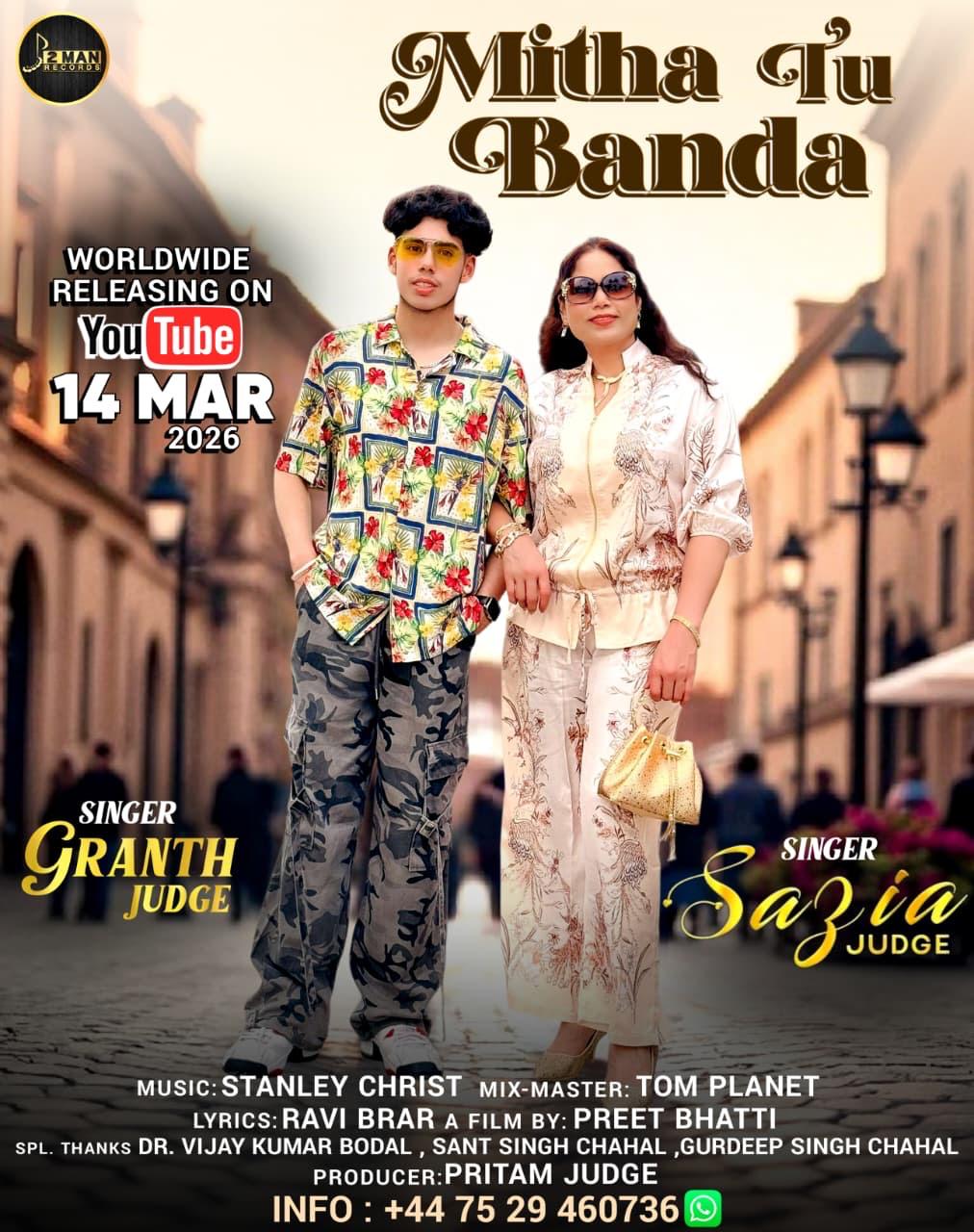 ਮਿੱਠਾ ਤੂ ਬਣਦਾ ….ਅੱਜ ਕੱਲ੍ਹ ਇਹ ਗਾਣਾ ਬਹੁਤ ਚਰਚਾ ’ਚ ਹੈ। ਚੌਦਾਂ ਮਾਰਚ ਨੂੰ ਰਿਲੀਜ਼ ਹੋਇਆ ਗਾਣਾ ਮਿੱਠਾ ਤੂੰ ਬਣਦਾ ਸਾਰੇ ਪਲੇਟਫਾਰਮਾਂ ’ਤੇ ਟਰੈਂਡਿੰਗ ’ਚ ਜਾ ਰਿਹਾ ਹੈ। ਇਹ ਗਾਣਾ ਬਹੁਤ ਹੀ ਖੂਬਸੂਰਤ ਮਾਂ-ਪੁੱਤ ਦੀ ਜੋੜੀ ਸਾਜ਼ੀਆ ਜੱਜ ਅਤੇ ਗ੍ਰੰਥ ਜੱਜ ਵੱਲੋਂ ਗਾਇਆ ਗਿਆ ਹੈ।