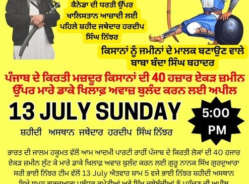 ਸਰੀ-ਭਾਰਤ ਦੀ ਹਕੂਮਤ ਵੱਲੋਂ ਆਮ ਆਦਮੀ ਪਾਰਟੀ ਰਾਹੀਂ ਪੰਜਾਬ...