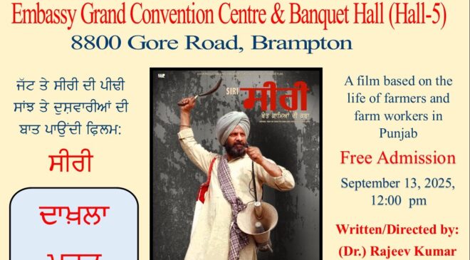 ਮੁੱਖ ਅਦਾਕਾਰ ਸੁਰਿੰਦਰ ਸ਼ਰਮਾ ਖ਼ੁਦ ਹੋਣਗੇ ਹਾਜ਼ਰ- ਬਰੈਂਪਟਨ: (ਕੁਲਵਿੰਦਰ...