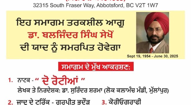 ਸਰੀ, 25 ਅਗਸਤ (ਹਰਦਮ ਮਾਨ)-ਤਰਕਸ਼ੀਲ (ਰੈਸ਼ਨਲਿਸਟ) ਸੁਸਾਇਟੀ ਕਨੇਡਾ ਐਬਸਫੋਰਡ...